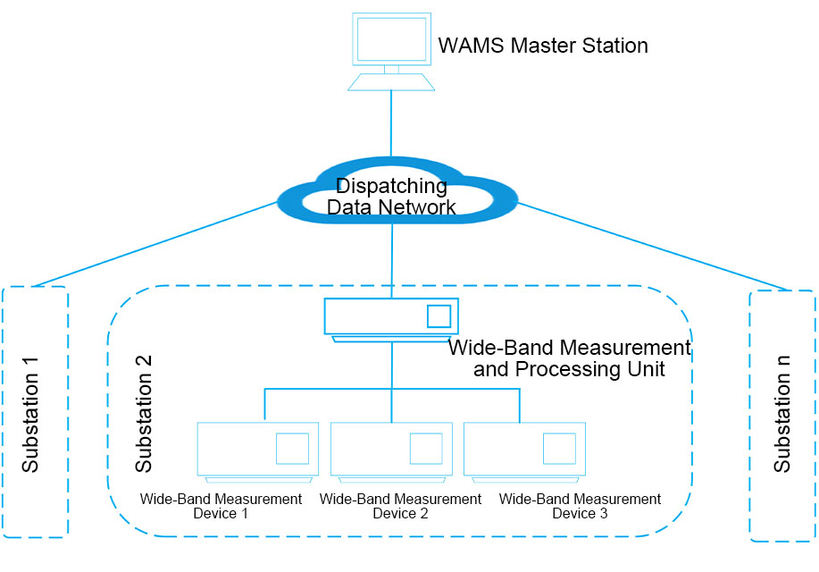 The wide-frequency measurement substation system consists of a wideband measurement device, data concentrator, and workstation.