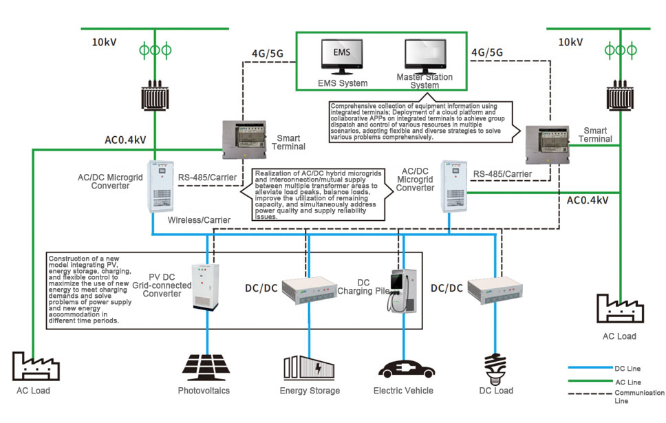 This solution can address issues such as insufficient capacity and overload of distribution transformers in the transformer area, low voltage at the end of the distribution network or overvoltage caused by distributed PV systems, renewable energy integration, and power supply reliability for loads in the transformer area during grid faults. Meanwhile, flexible DC lines can interconnect transformer areas of different voltage levels, facilitating transformer area management.
