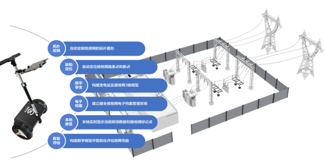 变电站接地网状态检测系统是通过地表的接地引下线,向接地网注入异频激励电流,利用激发产生的地表磁感应强度及坐标信息,基于微分算法完成接地网探测、形成拓扑结构图;基于电磁感应法和序贯概率比统计决策算法进行水平接地网腐蚀状态分析和缺陷定位,为现场开挖提供依据和决策。